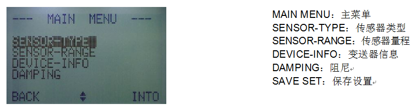 按鈕可以進入 DEVICE-INFO(變送器信息)子菜單,可以查看變送器的設備信息(一般情況下,用戶不需要進入此菜單)。